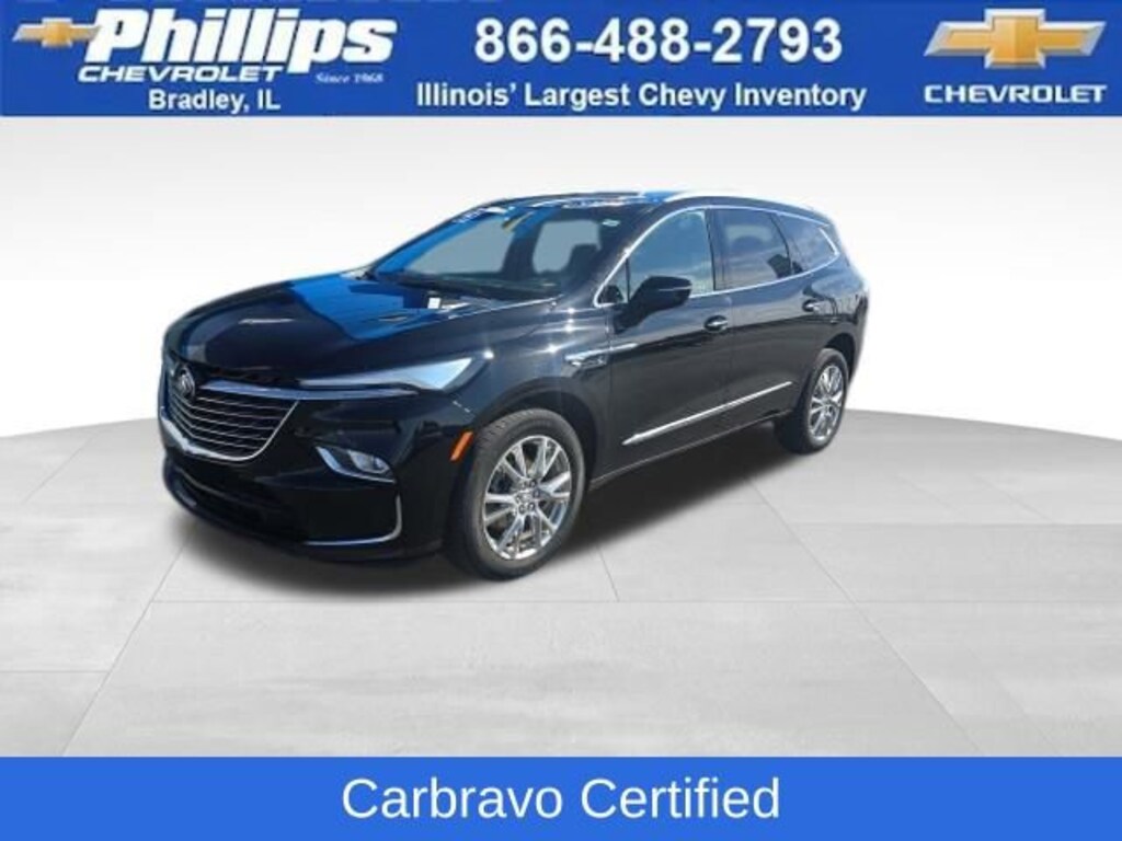 Carbravo Certified, Certifed Multi Point Inspection, One Owner, Carfax- Accident Free, Apple CarPlay, Android Auto, Keyless Entry, SUNROOF, AWD, Back Up Camera, Blind Spot Monitoring, Bluetooth, Cruise Control, Heated seats, Heated steering wheel, Forward Collision Alert, Intellibeam, Power lift gate, Power Locks, Power Seating, Power Windows, Push Button Start, Remote start, 20 Wheels, Lane Change Alert, Power Lift Gate, Carfax Buyback Guarantee, EXPERIENCE BUICK PACKAGE, Enclave Essence, 4D Sport Utility, 3.6L V6 SIDI VVT, 9-Speed Automatic, AWD, Ebony Twilight Metallic, Dark Galvanized With Ebony Interior Accents Leather, 20 Polished Aluminum Wheels, 3.49 Axle Ratio, 3rd row seats: split-bench, 4-Wheel Disc Brakes, 6-Speaker Audio System Feature, 6-Way Power Front Passenger Seat Adjuster, 7-Passenger Seating, 8-Way Power Driver Seat Adjuster, ABS brakes, AM/FM radio: SiriusXM with 360L, Auto-dimming door mirrors, Auto-dimming Rear-View mirror, Brake assist, Bumpers: body-color, Compass, Driver door bin, Driver vanity mirror, Dual front impact airbags, Dual front side impact airbags, Electronic Stability Control, Emergency communication system: OnStar and Buick connected services capable, Experience Buick Package, Four wheel independent suspension, Front & Rear Park Assist, Front anti-roll bar, Front dual zone A/C, Front Power Sliding Moonroof, Front reading lights, Fully automatic headlights, Garage door transmitter, Heated door mirrors, Heated Driver & Front Passenger Seats, Heated Steering Wheel, Illuminated entry, Leather steering wheel, Low tire pressure warning, Occupant sensing airbag, Outside temperature display, Overhead airbag, Overhead console, Panic alarm, Passenger door bin, Passenger vanity mirror, Perforated Leather-Appointed Seat Trim, Power door mirrors, Power Driver Lumbar Control Seat Adjuster, Power Liftgate, Power Passenger Lumbar Control Seat Adjuster, Power passenger seat, Power steering, Power windows, Preferred Equipment Group 1SL, Premium audio system: Buick Infotainment System, Radio data system, Radio: Buick Infotainment System AM/FM Stereo, Rear air conditioning, Rear anti-roll bar, Rear reading lights, Rear window defroster, Rear window wiper, Remote keyless entry, Roof rack: rails only, Security system, SiriusXM w/360L, Speed control, Speed-sensing steering, Spoiler, Steering wheel mounted audio controls, Tachometer, Telescoping steering wheel, Tilt steering wheel, Traction control, Trip computer, Turn signal indicator mirrors, Variably intermittent wipers, Voltmeter, Wireless Apple CarPlay/Wireless Android Auto. CARFAX One-Owner. Clean CARFAX. Certified. Ebony Twilight Metallic 2023 Buick Enclave Essence AWD 9-Speed Automatic 3.6L V6 SIDI VVTRecent Arrival!Certification Program Details: Type your description hereWith the internet today, a great value shouldn't be hard to find. Here at Phillips Chevrolet we do the research for you. We monitor the market daily to ensure our customers are getting the best value achievable. We price all of our vehicles to make the buying process as simple and easy as possible. Our internet prices are just one factor that makes us the #1, #2, and out to be the #3 Chevrolet dealerships in Illinois. The future #3 Chevy dealership in Illinois is conveniently located at 1400 Locke Drive, the corner of I-57 & IL 50, in Bradley/Bourbonnais, IL 60914.