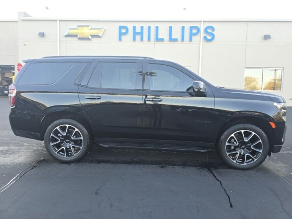 Low Miles, 4WD, Leather Seats, Luxury Package, Trailering Package, Backup Camera, Remote Start, 7 Passenger Seating, Forward Collision Alert, Navigation, Bose Audio, Side Blind Zone Alert, Rear Cross Traffic Alert, Lane Departure Warning, Lane Change Alert, Heated Seats, Heated Steering Wheel, Memory Seating, Power Liftgate, Apple CarPlay, Aluminum Wheels, Carfax Buyback Guarantee, Tahoe RST, 4D Sport Utility, EcoTec3 5.3L V8, 10-Speed Automatic with Overdrive, 4WD, Black, Jet Black/Victory Red w/Perforated Leather Seat Trim, 10-Way Power Driver & Passenger Seat Adjusters, 1st & 2nd Row Color-Keyed Carpeted Floor Mats, 2 USB Data Ports, 3.23 Rear Axle Ratio, 3rd Row 60/40 Power-Folding Split-Bench Seat, 4-Wheel Disc Brakes, ABS brakes, Air Conditioning, AM/FM radio: SiriusXM with 360L, Apple CarPlay/Android Auto, Auto High-beam Headlights, Auto-Dimming Inside Rear-View Mirror, Automatic Heated Steering Wheel, Automatic temperature control, Bose 9-Speaker Stereo Audio System Feature, Brake assist, Bright Front & Rear Door Sill Plates, Bumpers: body-color, Color-Keyed Carpeting Floor Covering, Compass, Delay-off headlights, Driver & Front Outboard Passenger Airbags, Driver Alert Package, Driver door bin, Driver vanity mirror, Dual front impact airbags, Dual front side impact airbags, Electronic Stability Control, Emergency communication system: OnStar and Chevrolet connected services capable, Floor Console w/Storage Area, Four wheel independent suspension, Front anti-roll bar, Front dual zone A/C, Front High-Back Reclining Bucket Seats, Front reading lights, Fully automatic headlights, Garage door transmitter, Hands-Free Rear Power Programmable Liftgate, HD Radio, HD Surround Vision, Heated 2nd Row Outboard Seats, Heated door mirrors, Heated Driver & Front Passenger Seats, Illuminated entry, Infotainment Display, Leather-Wrapped Steering Wheel, LED Daytime Running Lamps, Low tire pressure warning, Luxury Package, Memory Settings, Memory Settings for Driver, Occupant sensing airbag, Outside Heated Power-Adjustable Mirrors, Outside temperature display, Overhead airbag, Overhead console, Passenger door bin, Passenger vanity mirror, Perforated Leather Seat Trim, Power door mirrors, Power Liftgate, Power Release 2nd Row Bucket Seats, Power Tilt & Telescopic Steering Column, Preferred Equipment Group 1SP, Premium Smooth Ride Suspension, Radio: Chevrolet Infotainment 3 Plus System, Radio: Chevrolet Infotainment 3 Premium System, Rain sensing wipers, Rear air conditioning, Rear anti-roll bar, Rear Media & Nav Package, Rear Pedestrian Alert, Rear reading lights, Rear seat center armrest, Rear Seat Media System, Rear window defroster, Rear window wiper, Remote Start, Security system, SiriusXM Radio w/360L, Speed control, Speed-sensing steering, Spoiler, Steering wheel mounted audio controls, Tachometer, Telescoping steering wheel, Tilt steering wheel, Traction control, Trip computer, Universal Home Remote, Variably intermittent wipers, Voltmeter, Wheels: 22 x 9 Bright Machined. 2021 Chevrolet Tahoe Black RST 4D Sport Utility 4WD 10-Speed Automatic with Overdrive 16/20 City/Highway MPG EcoTec3 5.3L V8Recent Arrival!Awards:* JD Power Automotive Performance, Execution and Layout (APEAL) Study * ALG Residual ValueWith the internet today, a great value shouldnât be hard to find. Here at Phillips Chevrolet we do the research for you. We monitor the market daily to ensure our customers are getting the best value achievable. We price all of our vehicles to make the buying process as simple and easy as possible. Our internet prices are just one factor that makes us the #1, #2, and out to be the #3 Chevrolet dealerships in Illinois. The #2 Chevy dealership in Illinois is conveniently located just a one block south of 80/94, at 17730 S Torrence Avenue in Lansing, IL 60438.