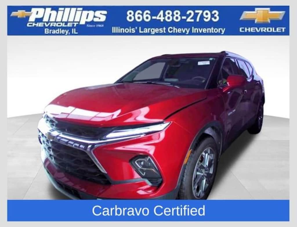 Carbravo Certified, One Owner, Apple CarPlay, Android Auto, Keyless Entry, Back Up Camera, Blind Spot Monitoring, Bluetooth, BOSE Audio, Cruise Control, Heated seats, Forward Collision Alert, Lane Assist, Power Locks, Power Seating, Power Windows, Push Button Start, Rear Traffic Alert, Remote start, Rear Park Assist, Pedestrian Detection, Lane Change Alert, Carfax Buyback Guarantee, CONVENIENCE PACKAGE, DRIVER CONFIDENCE PACKAGE, Blazer LT, 4D Sport Utility, 2.0L Turbocharged, 9-Speed Automatic with Overdrive, FWD, Radiant Red Tintcoat, Jet Black/Medium Gray w/Premium Cloth Seat Trim, 170 Amp Alternator, 4-Way Manual Front Passenger Seat Adjuster, 4-Wheel Disc Brakes, 6-Speaker Audio System Feature, 8-Way Power Driver Seat Adjuster, ABS brakes, Adaptive Cruise Control, AM/FM radio: SiriusXM with 360L, Apple CarPlay/Android Auto, Auto High-beam Headlights, Automatic temperature control, Black Roof-Mounted Side Rails, Brake assist, Bumpers: body-color, Child-Seat-Sensing Airbag, Compass, Convenience Package, Driver Confidence Package, Dual front impact airbags, Dual front side impact airbags, Electronic Stability Control, Emergency communication system: OnStar and Chevrolet connected services capable, Enhanced Automatic Emergency Braking, Four wheel independent suspension, Front anti-roll bar, Front Bucket Seats, Front dual zone A/C, Fully automatic headlights, Heated door mirrors, Heated Driver & Front Passenger Seats, Illuminated entry, Inside Rear-View Auto-Dimming Mirror, Knee airbag, Lane Change Alert w/Side Blind Zone Alert, Leather Shift Knob, Low tire pressure warning, Occupant sensing airbag, Outside temperature display, Overhead airbag, Overhead console, Passenger door bin, Power door mirrors, Power Driver Lumbar Control, Preferred Equipment Group 2LT, Premium audio system: Chevrolet Infotainment 3 Plus, Premium Cloth Seat Trim, Radio data system, Radio: Chevrolet Infotainment 3 Plus System, Rear anti-roll bar, Rear Cross Traffic Alert, Rear Park Assist w/Audible Warning, Rear Power Programmable Liftgate, Rear reading lights, Rear seat center armrest, Rear window defroster, Rear window wiper, Remote keyless entry, Ride & Handling Suspension, Security system, SiriusXM w/360L, Speed-sensing steering, Split folding rear seat, Spoiler, Steering wheel mounted audio controls, Telescoping steering wheel, Tilt steering wheel, Traction control, Universal Home Remote, Variably intermittent wipers, Voltmeter, Wheels: 18 Grazen Metallic Aluminum, Wireless Charging. CARFAX One-Owner. Clean CARFAX. Certified. Radiant Red Tintcoat 2024 Chevrolet Blazer LT FWD 9-Speed Automatic with Overdrive 2.0L Turbocharged