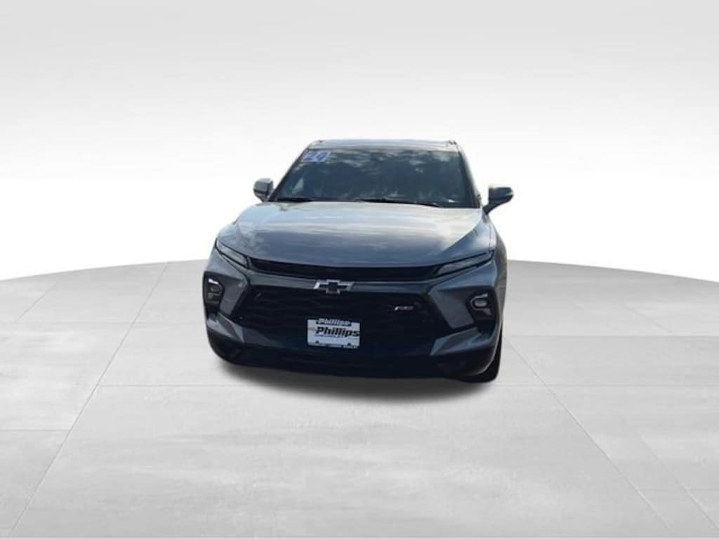 CarBravo Certified, Local Trade, Accident FREE, No Added Cert. Fees, Certified Multi-Point Inspection, Bose Audio, AWD!, Navigation, Heated Seats, Heated Steering Wheel, Apple CarPlay, Keyless Entry, Forward Collision Alert, Side Blind Zone Alert, Rear Cross Traffic Alert, Backup Camera, BLUETOOTH, Power Windows/Locks, Power Seating, PUSH BUTTON START!, Enhanced Convenience Package, 20 Wheels!, Memory Seating, Remote Start, Power Liftgate, Lane Departure Warning, Lane Keep Assist, Cruise Control, Carfax Buyback Guarantee, Blazer RS, 4D Sport Utility, 3.6L V6 SIDI, 9-Speed Automatic with Overdrive, AWD, Sterling Gray Metallic, Jet Black With Red Accents Leather, 3.49 Final Drive Axle Ratio, 4-Wheel Disc Brakes, 8-Way Power Driver Seat Adjuster, ABS brakes, Apple CarPlay/Android Auto, Auto-dimming door mirrors, Auto-dimming Rear-View mirror, Bose Premium 8-Speaker Audio System Feature, Brake assist, Bumpers: body-color, Child-Seat-Sensing Airbag, Compass, Driver door bin, Driver vanity mirror, Dual front impact airbags, Dual front side impact airbags, Electronic Stability Control, Emergency communication system: OnStar and Chevrolet connected services capable, Enhanced Convenience Package, Front anti-roll bar, Front Bucket Seats, Front Center Armrest, Front dual zone A/C, Front reading lights, Fully automatic headlights, Garage door transmitter, Heated door mirrors, Heated Driver & Front Passenger Seats, Heated Rear Outboard Seating Positions, Heated Steering Wheel, Illuminated entry, Knee airbag, Leather Shift Knob, Leather steering wheel, Low tire pressure warning, Memory Settings For Driver Seat & Exterior Mirrors, Navigation System, Occupant sensing airbag, Outside temperature display, Overhead airbag, Overhead console, Panic alarm, Passenger vanity mirror, Perforated Leather-Appointed Seat Trim, Power door mirrors, Power Driver Lumbar Control, Power driver seat, Power Liftgate, Power passenger seat, Power steering, Power Tilt & Telescoping Steering Column, Power windows, Preferred Equipment Group 1RS, Radio data system, Radio: Chevrolet Infotainment 3 Premium System, Rear anti-roll bar, Rear reading lights, Rear seat center armrest, Rear window defroster, Rear window wiper, Remote keyless entry, Ride & Handling Suspension, Security system, SiriusXM w/360L, Speed control, Speed-sensing steering, Split folding rear seat, Spoiler, Steering wheel mounted audio controls, Tachometer, Telescoping steering wheel, Tilt steering wheel, Traction control, Trip computer, Turn signal indicator mirrors, Variably intermittent wipers, Ventilated Driver & Front Passenger Seats, Voltmeter, Wheels: 20 Technical Gray Aluminum. 2024 Chevrolet Blazer Sterling Gray Metallic RS 4D Sport Utility AWD 9-Speed Automatic with Overdrive 18/26 City/Highway MPG 3.6L V6 SIDI