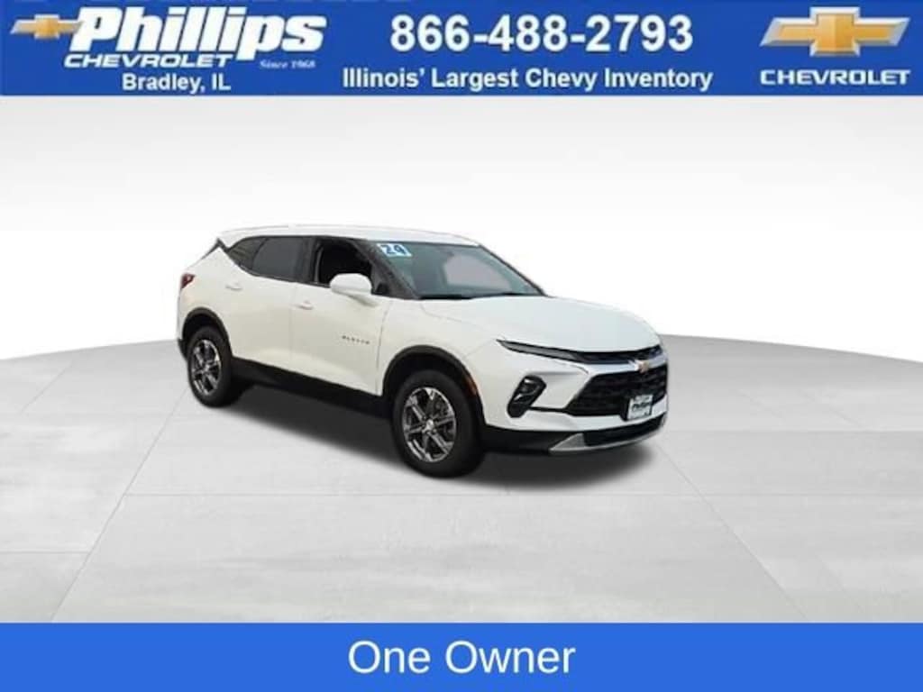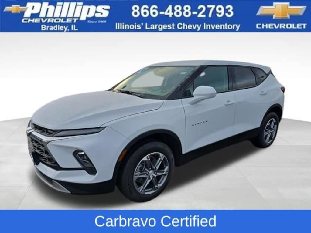 Carbravo Certified, One Owner, Carfax- Accident Free, Apple CarPlay, Android Auto, Keyless Entry, Auto Check - Accident free, Back Up Camera, Blind Spot Monitoring, Cruise Control, Heated seats, Forward Collision Alert, Intellibeam, Lane Assist, Pedestrian Monitoring, Power Locks, Power Seating, Power Windows, Push Button Start, Remaining factory warranty, Remote start, Chevy Safety Assist Package, Lane Change Alert, Carfax Buyback Guarantee, Blazer LT, 4D Sport Utility, 2.0L Turbocharged, 9-Speed Automatic with Overdrive, FWD, Summit White, Jet Black/Medium Gray w/Premium Cloth Seat Trim, 170 Amp Alternator, 3.47 Final Drive Axle Ratio, 4-Way Manual Front Passenger Seat Adjuster, 4-Wheel Disc Brakes, 6-Speaker Audio System Feature, 8-Way Power Driver Seat Adjuster, ABS brakes, AM/FM radio: SiriusXM with 360L, Apple CarPlay/Android Auto, Auto High-beam Headlights, Automatic temperature control, Brake assist, Bumpers: body-color, Child-Seat-Sensing Airbag, Compass, Delay-off headlights, Driver door bin, Driver vanity mirror, Dual front impact airbags, Dual front side impact airbags, Electronic Stability Control, Emergency communication system: OnStar and Chevrolet connected services capable, Four wheel independent suspension, Front anti-roll bar, Front Bucket Seats, Front Center Armrest, Front dual zone A/C, Front reading lights, Fully automatic headlights, Heated door mirrors, Heated Driver & Front Passenger Seats, Illuminated entry, Knee airbag, Leather Shift Knob, Low tire pressure warning, Occupant sensing airbag, Outside temperature display, Overhead airbag, Overhead console, Panic alarm, Passenger door bin, Passenger vanity mirror, Power door mirrors, Power Driver Lumbar Control, Preferred Equipment Group 2LT, Premium Cloth Seat Trim, Radio data system, Radio: Chevrolet Infotainment 3 Plus System, Rear anti-roll bar, Rear reading lights, Rear seat center armrest, Rear window defroster, Rear window wiper, Remote keyless entry, Ride & Handling Suspension, Security system, SiriusXM w/360L, Speed control, Speed-sensing steering, Split folding rear seat, Spoiler, Steering wheel mounted audio controls, Tachometer, Telescoping steering wheel, Tilt steering wheel, Traction control, Trip computer, Variably intermittent wipers, Voltmeter, Wheels: 18 Grazen Metallic Aluminum. CARFAX One-Owner. Clean CARFAX. Certified. Summit White 2024 Chevrolet Blazer LT FWD 9-Speed Automatic with Overdrive 2.0L Turbocharged22/29 City/Highway MPGCertification Program Details: Type your description hereWith the internet today, a great value shouldn't be hard to find. Here at Phillips Chevrolet we do the research for you. We monitor the market daily to ensure our customers are getting the best value achievable. We price all of our vehicles to make the buying process as simple and easy as possible. Our internet prices are just one factor that makes us the #1, #2, and out to be the #3 Chevrolet dealerships in Illinois. The future #3 Chevy dealership in Illinois is conveniently located at 1400 Locke Drive, the corner of I-57 & IL 50, in Bradley/Bourbonnais, IL 60914.
