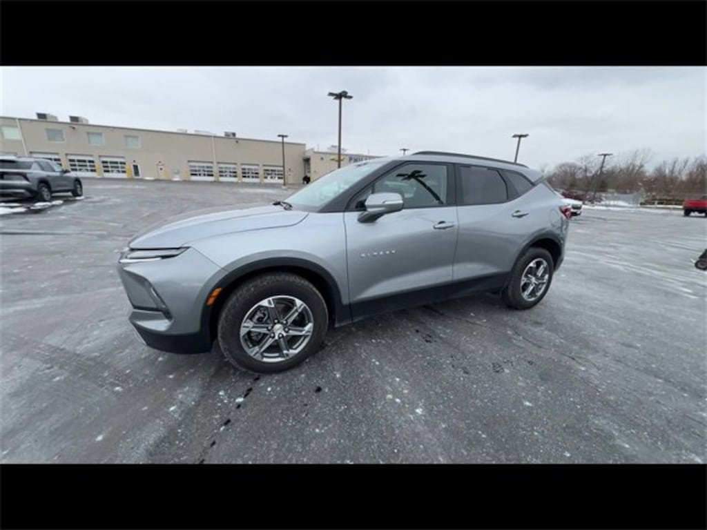 Low Miles, CarBravo Certified, AWD, Leather Seats, Trailering Package, Backup Camera, Remote Start, Pwr Dr Seat, Forward Collision Alert, Side Blind Zone Alert, Rear Cross Traffic Alert, Lane Departure Warning, Lane Change Alert, Lane Keep Assist, Heated Seats, Power Liftgate, Apple CarPlay, Aluminum Wheels, Carfax Buyback Guarantee, Blazer LT, 4D Sport Utility, 3.6L V6 SIDI, 9-Speed Automatic with Overdrive, AWD, Sterling Gray Metallic, Jet Black w/Perforated Leather-Appointed Seat Trim, 170 Amp Alternator, 4-Wheel Disc Brakes, 6-Speaker Audio System Feature, 6-Way Power Front Passenger Seat Adjuster, 8-Way Power Driver Seat Adjuster, ABS brakes, Air Conditioning, AM/FM radio: SiriusXM with 360L, Apple CarPlay/Android Auto, Auto High-beam Headlights, Auto-dimming door mirrors, Auto-dimming Rear-View mirror, Automatic temperature control, Black Roof-Mounted Side Rails, Brake assist, Bumpers: body-color, Child-Seat-Sensing Airbag, Compass, Driver Confidence Package, Driver door bin, Driver vanity mirror, Dual front impact airbags, Dual front side impact airbags, Electronic Stability Control, Emergency communication system: OnStar and Chevrolet connected services capable, Four wheel independent suspension, Front anti-roll bar, Front Bucket Seats, Front Center Armrest, Front dual zone A/C, Front reading lights, Fully automatic headlights, Garage door transmitter, Heated door mirrors, Heated Driver & Front Passenger Seats, Illuminated entry, Inside Rear-View Auto-Dimming Mirror, Knee airbag, Lane Change Alert w/Side Blind Zone Alert, Leather Shift Knob, Leather steering wheel, Low tire pressure warning, Not Equipped w/Rear Park Assist, Occupant sensing airbag, Outside Heated Power-Adjustable Body-Color Mirrors, Outside temperature display, Overhead airbag, Overhead console, Passenger door bin, Passenger vanity mirror, Perforated Leather-Appointed Seat Trim, Power door mirrors, Power Driver Lumbar Control, Power Liftgate, Power passenger seat, Preferred Equipment Group 3LT, Premium audio system: Chevrolet Infotainment 3 Plus, Radio data system, Radio: Chevrolet Infotainment 3 Plus System, Rear anti-roll bar, Rear Cross Traffic Alert, Rear Park Assist w/Audible Warning, Rear Power Programmable Liftgate, Rear reading lights, Rear seat center armrest, Rear window defroster, Rear window wiper, Remote keyless entry, Ride & Handling Suspension, Security system, SiriusXM w/360L, Speed control, Speed-sensing steering, Split folding rear seat, Spoiler, Steering wheel mounted audio controls, Tachometer, Telescoping steering wheel, Tilt steering wheel, Traction control, Trip computer, Turn signal indicator mirrors, Universal Home Remote, Variably intermittent wipers, Voltmeter, Wheels: 18 Grazen Metallic Aluminum. 2024 Chevrolet Blazer Sterling Gray Metallic LT 4D Sport Utility AWD 9-Speed Automatic with Overdrive 18/26 City/Highway MPG 3.6L V6 SIDI