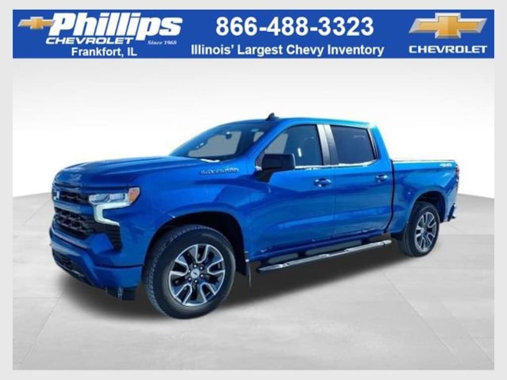 CarBravo Certified, Bucket Seats w/ Center Console, 4WD, Trailering Package, Backup Camera, Remote Start, Pwr Dr Seat, Forward Collision Alert, Navigation, Lane Departure Warning, Lane Change Alert, Lane Keep Assist, Heated Seats, Heated Steering Wheel, Power Liftgate, Apple CarPlay, 20 Wheels, Carfax Buyback Guarantee, Silverado 1500 RST, 4D Crew Cab, EcoTec3 5.3L V8, 10-Speed Automatic, 4WD, Glacier Blue Metallic, Jet Black w/Cloth Seat Trim, 10-Way Power Driver Seat w/Lumbar, 12.3 Multicolor Reconfigurable Digital Display, 120-Volt Bed Mounted Power Outlet, 120-Volt Interior Power Outlet, 2 USB Data Ports, 220 Amp Alternator, 3.23 Rear Axle Ratio, 4-Wheel Disc Brakes, 6-Speaker Audio System, ABS brakes, All-Star Edition, Auto High-beam Headlights, Auto-Locking Rear Differential, Automatic Emergency Braking, Automatic temperature control, Auxiliary External Transmission Oil Cooler, Bluetooth® For Phone, Brake assist, Bumpers: body-color, Chevrolet Connected Access Capable, Cloth Seat Trim, Color-Keyed Carpeting Floor Covering, Compass, Convenience Package, Deep-Tinted Glass, Delay-off headlights, Driver door bin, Driver vanity mirror, Dual front impact airbags, Dual front side impact airbags, Dual-Zone Automatic Climate Control, Electric Rear-Window Defogger, Electrical Steering Column Lock, Electronic Cruise Control, Electronic Stability Control, Electronic Transmission Range Selector Shifter, External Engine Oil Cooler, EZ Lift Power Lock & Release Tailgate, Floor Mounted Center Console, Following Distance Indicator, Forward Collision Alert, Front anti-roll bar, Front Bucket Seats, Front Center Armrest w/Storage, Front dual zone A/C, Front fog lights, Front Frame-Mounted Black Recovery Hooks, Front LED Fog Lamps, Front Pedestrian Braking, Front reading lights, Front wheel independent suspension, Fully automatic headlights, HD Rear Vision Camera, Heated Driver & Front Outboard Passenger Seats, Heated Power-Adjustable Outside Mirrors, Heated Steering Wheel, High Capacity Suspension Package, High Gloss Black Mirror Caps, Hitch Guidance, Illuminated entry, Inside Rear-View Mirror w/Tilt, IntelliBeam Automatic High Beam On/Off, Keyless Open & Start, Lane Keep Assist w/Lane Departure Warning, LED Cargo Area Lighting, Low tire pressure warning, Navigation System, Not Equipped w/Steering Column Lock, Occupant sensing airbag, OnStar & Chevrolet Connected Services Capable, Outside temperature display, Overhead airbag, Overhead console, Passenger door bin, Passenger vanity mirror, Power door mirrors, Power Front Windows w/Driver Express Up/Down, Power Front Windows w/Passenger Express Down, Power Rear Windows w/Express Down, Preferred Equipment Group 1SP, Rear 60/40 Folding Bench Seat (Folds Up), Rear reading lights, Rear step bumper, Rear window defroster, Remote Vehicle Starter System, Security system, Single Outlet Exhaust, SiriusXM w/360L, Speed-sensing steering, Standard Suspension Package, Standard Tailgate, Steering Wheel Audio Controls, Steering wheel mounted audio controls, Tachometer, Telescoping steering wheel, Theft Deterrent System (Unauthorized Entry), Tilt steering wheel, Traction control, Trailering Package, Trip computer, Variably intermittent wipers, Voltmeter, Wheels: 20 x 9 Painted Aluminum, Wi-Fi Hot Spot Capable, Wireless Charging, Wrapped Steering Wheel. 2024 Chevrolet Silverado 1500 Glacier Blue Metallic RST 4D Crew Cab 4WD 10-Speed Automatic 15/20 City/Highway MPG EcoTec3 5.3L V8Certification Program Details: Type your description hereWith the internet today, a great value shouldnât be hard to find. Here at Phillips Chevrolet we do the research for you. We monitor the market daily to ensure our customers are getting the best value achievable. We price all of our vehicles to make the buying process as simple and easy as possible. Our internet prices are just one factor that makes us the #1, #2, and out to be the #3 Chevrolet dealerships in Illinois. The #2 Chevy dealership in Illinois is