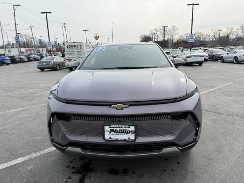 CarBravo Certified, ONE Owner!, Accident FREE, No Added Cert. Fees, Certified Multi-Point Inspection, Heated Seats, Heated Steering Wheel, Apple CarPlay, Keyless Entry, Forward Collision Alert, Side Blind Zone Alert, Rear Cross Traffic Alert, Backup Camera, BLUETOOTH, Power Windows/Locks, Power Seating, PUSH BUTTON START!, Safety Alert Seat, INTELLIBEAM, Remote Start, Power Liftgate, Lane Departure Warning, Rear Park Assist, Lane Keep Assist, HD Surround Vision, 19 WHEELS, Adaptive Cruise Control, Carfax Buyback Guarantee, Equinox EV LT, 4D Sport Utility, Electric Motor, 1-Speed Automatic, FWD, Galaxy Gray Metallic, Sky Cool Gray w/Evotex Seat Trim, 19 Wheels, 4-Wheel Disc Brakes, 6-Speaker Audio System Feature, 6-Way Manual Front Passenger Seat Adjuster, 8-Way Power Driver Seat Adjuster, ABS brakes, Air Conditioning, AM/FM radio: SiriusXM with 360L, Auto High-beam Headlights, Auto-dimming Rear-View mirror, Automatic temperature control, Brake assist, Bumpers: body-color, Compass, Driver door bin, Driver vanity mirror, Dual front impact airbags, Dual front side impact airbags, Electronic Stability Control, Emergency communication system: OnStar and Chevrolet connected services capable, Evotex Seat Trim, Four wheel independent suspension, Front anti-roll bar, Front Bucket Seats, Front Center Armrest, Front reading lights, Fully automatic headlights, Heated door mirrors, Heated Driver and Front Passenger Seats Cushion and Seatback, Heated steering wheel, Illuminated entry, Knee airbag, Low tire pressure warning, LT 2 Package, Navigation system: Google built-in compatibility (select service plan required, terms and limitations apply), Occupant sensing airbag, Outside temperature display, Overhead airbag, Overhead console, Passenger door bin, Passenger vanity mirror, Power door mirrors, Power Driver Lumbar Control, Power Liftgate, Preferred Equipment Group 2LT, Radio: 17.7 Diagonal Advanced Color LCD Display, Rear anti-roll bar, Rear reading lights, Rear seat center armrest, Rear window defroster, Rear window wiper, Remote keyless entry, Security system, SiriusXM with 360L Trial Subscription, Speed control, Split folding rear seat, Spoiler, Steering wheel mounted audio controls, Telescoping steering wheel, Tilt steering wheel, Traction control, Trip computer, Turn signal indicator mirrors, Variably intermittent wipers. 2025 Chevrolet Equinox EV Galaxy Gray Metallic LT 4D Sport Utility FWD 1-Speed Automatic Electric MotorRecent Arrival!Certification Program Details: Type your description hereWith the internet today, a great value shouldnât be hard to find. Here at Phillips Chevrolet we do the research for you. We monitor the market daily to ensure our customers are getting the best value achievable. We price all of our vehicles to make the buying process as simple and easy as possible. Our internet prices are just one factor that makes us the #1, #2, and out to be the #3 Chevrolet dealerships in Illinois. The #2 Chevy dealership in Illinois is conveniently located just a one block south of 80/94, at 17730 S Torrence Avenue in Lansing, IL 60438.