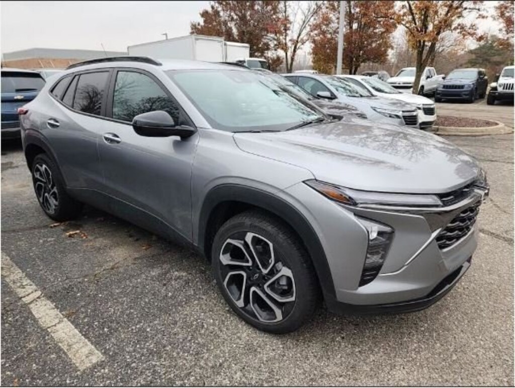Low Miles, CarBravo Certified, Backup Camera, Remote Start, Pwr Dr Seat, Forward Collision Alert, Side Blind Zone Alert, Rear Cross Traffic Alert, Lane Departure Warning, Lane Change Alert, Lane Keep Assist, Adaptive Cruise Control, Heated Seats, Heated Steering Wheel, Apple CarPlay, Aluminum Wheels, Carfax Buyback Guarantee, Trax 2RS, 4D Sport Utility, 1.2L Ecotec Turbo DOHC DI w/VVT, 6-Speed Automatic, FWD, Sterling Gray Metallic, Jet Black w/Red Accents w/Evotex Seat Trim, 2-Way Adjustable Front Head Restraints, 2-Way Power Driver Lumbar Seat Adjuster, 4-Way Manual Front Passenger Seat Adjuster, 4-Wheel Disc Brakes, 6-Speaker Audio System Feature, 8-Way Power Driver Seat Adjuster, ABS brakes, Adaptive Cruise Control, Air Conditioning, AM/FM radio: SiriusXM, Auto High-beam Headlights, Automatic temperature control, Brake assist, Bumpers: body-color, Compass, Driver Confidence Package, Driver door bin, Driver vanity mirror, Dual front impact airbags, Dual front side impact airbags, Electronic Stability Control, Emergency communication system: OnStar One Essentials, Evotex Seat Trim, Exterior Parking Camera Rear, Front anti-roll bar, Front Bucket Seats, Front Center Armrest, Front reading lights, Front wheel independent suspension, Fully automatic headlights, Heated door mirrors, Heated Driver and Front Passenger Seats, Heated steering wheel, Illuminated entry, Lane Change Alert with Side Blind Zone Alert, Leather steering wheel, Low tire pressure warning, Occupant sensing airbag, Outside temperature display, Overhead airbag, Overhead console, Passenger door bin, Passenger vanity mirror, Power door mirrors, Preferred Equipment Group 2RS, Premium audio system: Chevrolet Infotainment 3, Radio data system, Radio: AM/FM Stereo Audio System, Rear Cross-Traffic Alert, Rear Park Assist, Rear window defroster, Rear window wiper, Remote keyless entry, Security system, SiriusXM Trial Subscription, Split folding rear seat, Spoiler, Sport steering wheel, Steering wheel mounted audio controls, Tachometer, Telescoping steering wheel, Tilt steering wheel, Traction control, Trip computer, Variably intermittent wipers, Wheels: 19 Black-Painted Machined Aluminum. 2025 Chevrolet Trax Sterling Gray Metallic 2RS 4D Sport Utility FWD 6-Speed Automatic 28/32 City/Highway MPG 1.2L Ecotec Turbo DOHC DI w/VVT