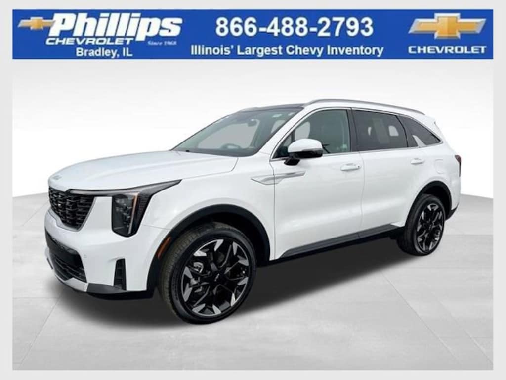 Back Up Camera, Carfax Buyback Guarantee, AWD. Clean CARFAX. Certified. Glacial White Pearl 2025 Kia Sorento EX AWD 8 Speed Dual Clutch 2.5L I4 DGI Turbocharged DOHC 16V LEV3-SULEV30 281hpRecent Arrival! 20/27 City/Highway MPGKia Details:* Vehicle History (for Kia Certified Pre-Owned program)* Transferable Warranty (for Kia Certified Pre-Owned program)* Limited Warranty: 12 Month/12,000 Mile (whichever comes first) Platinum Coverage from certified purchase date (for Kia Certified Pre-Owned program)* Roadside Assistance (for Kia Certified Pre-Owned program)* Includes Rental Car and Trip Interruption Reimbursement. 3 month Sirius trial subscription (for Kia Certified Pre-Owned program), Kia Branded Vehicles with 0-100,000 Miles, 7-10 Years Back From Current Year (2015-2018 MY in 2024), 135 Point Inspection, 6 Months/6,000 Mile Limited Powertrain Warranty, $50 Deductible, Roadside Assistance - 1 Year/Unlimited Miles (for Kia CPO Lite program)* Warranty Deductible: $50 (for Kia Certified Pre-Owned program)* 165 Point Inspection (for Kia Certified Pre-Owned program)* Powertrain Limited Warranty: 120 Month/100,000 Mile (whichever comes first) from original in-service date (for Kia Certified Pre-Owned program)With the internet today, a great value shouldn't be hard to find. Here at Phillips Chevrolet we do the research for you. We monitor the market daily to ensure our customers are getting the best value achievable. We price all of our vehicles to make the buying process as simple and easy as possible. Our internet prices are just one factor that makes us the #1, #2, and out to be the #3 Chevrolet dealerships in Illinois. The future #3 Chevy dealership in Illinois is conveniently located at 1400 Locke Drive, the corner of I-57 & IL 50, in Bradley/Bourbonnais, IL 60914.