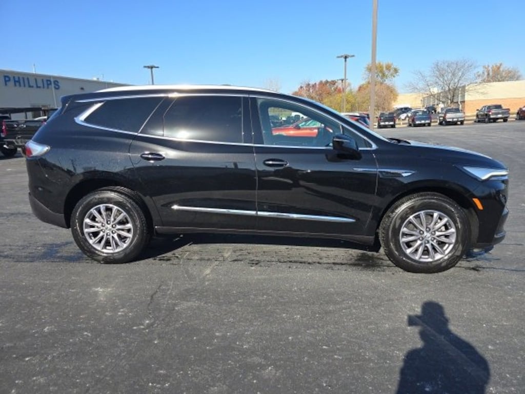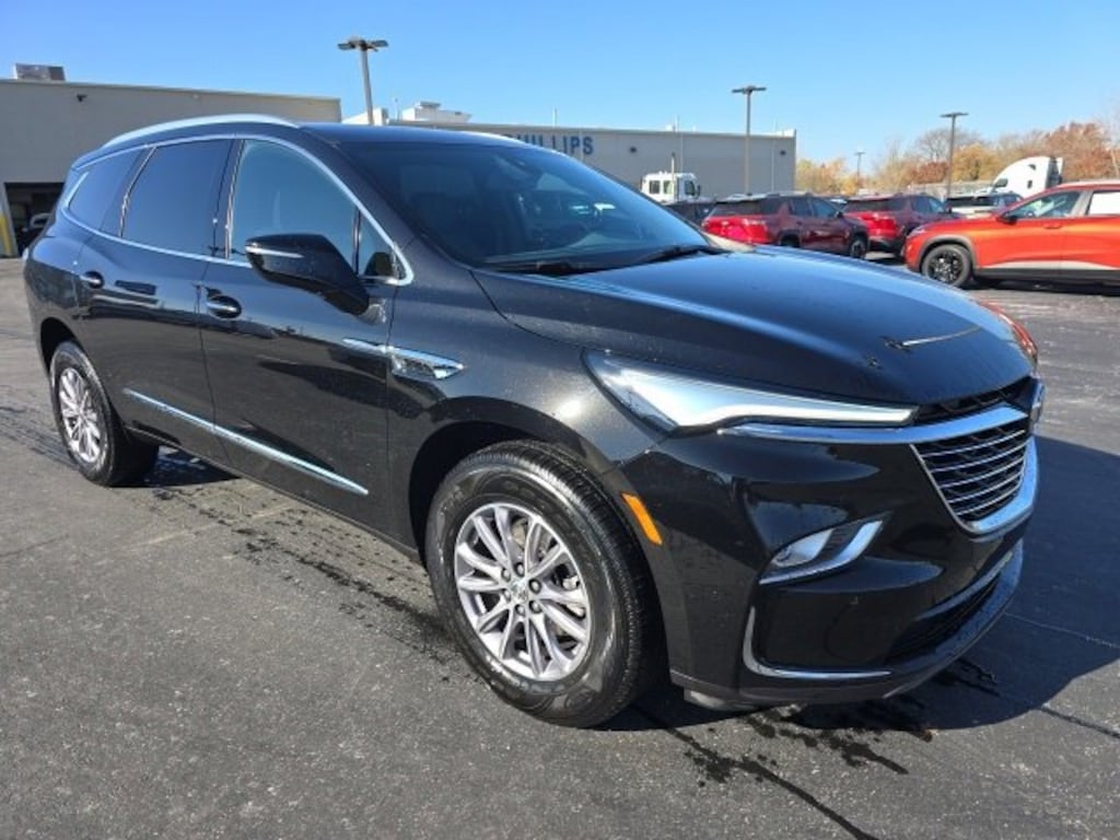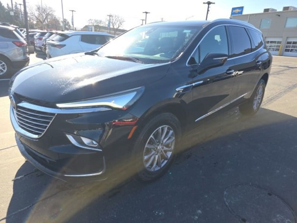 Low Miles, CarBravo Certified, Leather Seats, Backup Camera, Remote Start, 7 Passenger Seating, Forward Collision Alert, Side Blind Zone Alert, Rear Cross Traffic Alert, Lane Departure Warning, Lane Change Alert, Lane Keep Assist, Front & Rear Park Assist, Heated Seats, Heated Steering Wheel, Power Liftgate, Apple CarPlay, Aluminum Wheels, Carfax Buyback Guarantee, Enclave Essence, 4D Sport Utility, 3.6L V6 SIDI VVT, 9-Speed Automatic, FWD, Ebony Twilight Metallic, Dark Galvanized w/Ebony Accents w/Perforated Leather-Appointed Seat Trim, 18 Aluminum Wheels, 3rd row seats: split-bench, 4-Wheel Disc Brakes, 6-Speaker Audio System Feature, 6-Way Power Front Passenger Seat Adjuster, 7-Passenger Seating, 8-Way Power Driver Seat Adjuster, ABS brakes, Air Conditioning, AM/FM radio: SiriusXM with 360L, Auto High-beam Headlights, Auto-dimming door mirrors, Auto-dimming Rear-View mirror, Automatic temperature control, Brake assist, Bumpers: body-color, Compass, Delay-off headlights, Driver door bin, Driver vanity mirror, Dual front impact airbags, Dual front side impact airbags, Electronic Stability Control, Emergency communication system: OnStar and Buick connected services capable, Four wheel independent suspension, Front & Rear Park Assist, Front anti-roll bar, Front Bucket Seats, Front Center Armrest, Front dual zone A/C, Front reading lights, Fully automatic headlights, Garage door transmitter, Heated door mirrors, Heated Driver & Front Passenger Seats, Heated Steering Wheel, Illuminated entry, Leather steering wheel, Low tire pressure warning, Occupant sensing airbag, Outside temperature display, Overhead airbag, Overhead console, Passenger door bin, Passenger vanity mirror, Perforated Leather-Appointed Seat Trim, Power door mirrors, Power Driver Lumbar Control Seat Adjuster, Power Liftgate, Power Passenger Lumbar Control Seat Adjuster, Power passenger seat, Preferred Equipment Group 1SL, Premium audio system: Buick Infotainment System, Radio data system, Radio: Buick Infotainment System AM/FM Stereo, Rear air conditioning, Rear anti-roll bar, Rear reading lights, Rear window defroster, Rear window wiper, Remote keyless entry, Security system, SiriusXM w/360L, Speed control, Speed-sensing steering, Spoiler, Steering wheel mounted audio controls, Tachometer, Telescoping steering wheel, Tilt steering wheel, Traction control, Trip computer, Turn signal indicator mirrors, Variably intermittent wipers, Voltmeter, Wireless Apple CarPlay/Wireless Android Auto. 2023 Buick Enclave Ebony Twilight Metallic Essence 4D Sport Utility FWD 9-Speed Automatic 18/26 City/Highway MPG 3.6L V6 SIDI VVT