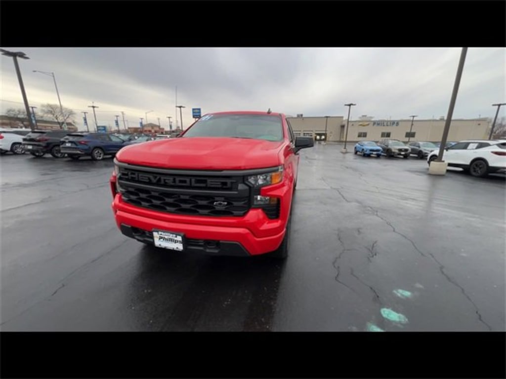 CarBravo Certified, 4WD, Trailering Package, Backup Camera, Remote Start, Pwr Dr Seat, Forward Collision Alert, Lane Departure Warning, Lane Keep Assist, Apple CarPlay, 20 Wheels, Carfax Buyback Guarantee, Silverado 1500 Custom, 4D Crew Cab, 2.7L Turbo, 8-Speed Automatic, 4WD, Red Hot, Jet Black w/Cloth Seat Trim, 10-Way Power Driver Seat w/Lumbar, 120-Volt Instrument Panel Power Outlet, 3.5 Monochromatic Display Driver Info Center, 4-Wheel Disc Brakes, 6-Speaker Audio System, ABS brakes, Air Conditioning, AM/FM radio: SiriusXM, Apple CarPlay/Android Auto, Auto High-beam Headlights, Auto-Locking Rear Differential, Automatic Emergency Braking, Bluetooth® For Phone, Brake assist, Bumpers: body-color, Chevrolet Connected Access Capable, Chevytec Spray-On Black Bedliner, Cloth Seat Trim, Color-Keyed Carpeting Floor Covering, Compass, Custom Convenience Package, Custom Value Package, Deep-Tinted Glass, Driver door bin, Driver vanity mirror, Dual front impact airbags, Dual front side impact airbags, Dual Rear USB Ports (Charge Only), Electric Rear-Window Defogger, Electrical Steering Column Lock, Electronic Cruise Control, Electronic Stability Control, EZ Lift Power Lock & Release Tailgate, Following Distance Indicator, Forward Collision Alert, Front anti-roll bar, Front Black Bowtie Emblem (LPO), Front Center Armrest w/Storage, Front Frame-Mounted Black Recovery Hooks, Front License Plate Kit, Front Pedestrian Braking, Front reading lights, Front Rubberized Vinyl Floor Mats, Front wheel independent suspension, Fully automatic headlights, HD Rear Vision Camera, Heated door mirrors, High Capacity Suspension Package, Hitch Guidance, Illuminated entry, IntelliBeam Automatic High Beam On/Off, Lane Keep Assist w/Lane Departure Warning, LED Cargo Area Lighting, Low tire pressure warning, Manual Tilt Wheel Steering Column, Not Equipped w/Steering Column Lock, Occupant sensing airbag, OnStar & Chevrolet Connected Services Capable, Outside temperature display, Overhead airbag, Overhead console, Passenger door bin, Passenger vanity mirror, Power door mirrors, Power Front Windows w/Driver Express Up/Down, Power Front Windows w/Passenger Express Down, Power Rear Windows w/Express Down, Preferred Equipment Group 1CX, Premium audio system: Chevrolet Infotainment 3, Radio data system, Radio: Chevrolet Infotainment 3 System, Rear 60/40 Folding Bench Seat (Folds Up), Rear reading lights, Rear Rubberized-Vinyl Floor Mats, Rear step bumper, Rear Wheelhouse Liners, Remote Keyless Entry, Remote Vehicle Starter System, Security system, SiriusXM Radio, Speed-sensing steering, Standard Tailgate, Tachometer, Theft Deterrent System (Unauthorized Entry), Tilt steering wheel, Traction control, Trailering Package, Trip computer, Variably intermittent wipers, Voltmeter, Wheels: 20 x 9 Bright Silver Painted Aluminum, Wi-Fi Hot Spot Capable, Wireless Phone Projection. 2022 Chevrolet Silverado 1500 Red Hot Custom 4D Crew Cab 4WD 8-Speed Automatic 17/20 City/Highway MPG 2.7L Turbo