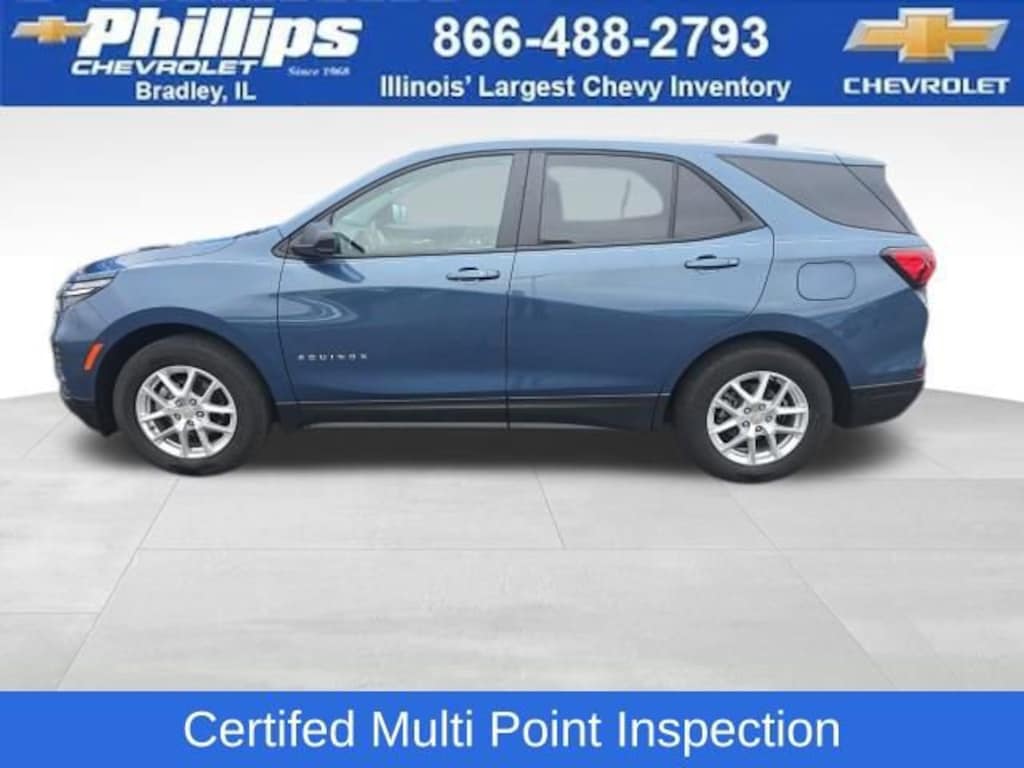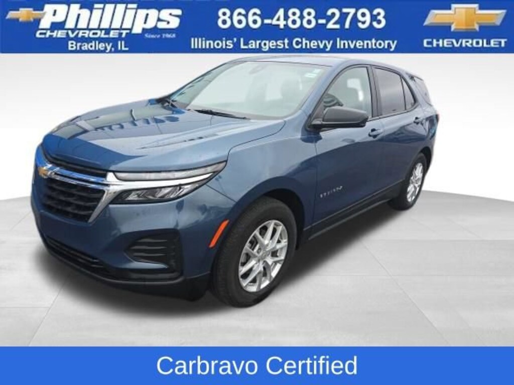 Carbravo Certified, Certifed Multi Point Inspection, One Owner, Carfax- Accident Free, Back Up Camera, Carfax Buyback Guarantee, LS CONVENIENCE PACKAGE, DRIVER CONFIDENCE II PACKAGE, Equinox LS, 4D Sport Utility, 1.5L DOHC, 6-Speed Automatic Electronic with Overdrive, FWD, Lakeshore Blue Metallic, Medium Ash Gray Cloth, Deep-Tinted Rear Glass, Driver 8-Way Power Seat Adjuster, Driver Confidence II Package, Lane Change Alert w/Side Blind Zone Alert, LS Convenience Package, Multi-Color Enhanced Driver Instrument Info Display, Preferred Equipment Group 1LS, Rear Cross Traffic Alert, Rear Park Assist w/Audible Warning. CARFAX One-Owner. Clean CARFAX. Certified. Lakeshore Blue Metallic 2024 Chevrolet Equinox LS FWD 6-Speed Automatic Electronic with Overdrive 1.5L DOHC26/31 City/Highway MPGCertification Program Details: Type your description hereWith the internet today, a great value shouldn't be hard to find. Here at Phillips Chevrolet we do the research for you. We monitor the market daily to ensure our customers are getting the best value achievable. We price all of our vehicles to make the buying process as simple and easy as possible. Our internet prices are just one factor that makes us the #1, #2, and out to be the #3 Chevrolet dealerships in Illinois. The future #3 Chevy dealership in Illinois is conveniently located at 1400 Locke Drive, the corner of I-57 & IL 50, in Bradley/Bourbonnais, IL 60914.