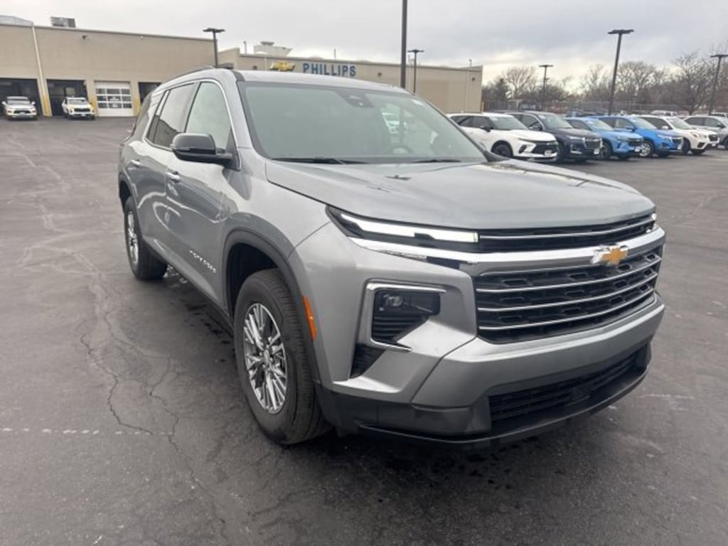 Low Miles, CarBravo Certified, AWD, Backup Camera, Remote Start, 7 Passenger Seating, Pwr Dr Seat, Forward Collision Alert, Navigation, Rear Cross Traffic Alert, Lane Departure Warning, Lane Keep Assist, Rear Park Assist, Adaptive Cruise Control, Heated Seats, Heated Steering Wheel, Power Liftgate, Apple CarPlay, Aluminum Wheels, Carfax Buyback Guarantee, Traverse LT 2LT, 4D Sport Utility, 2.5L DOHC, 8-Speed Automatic, AWD, Sterling Gray Metallic, Jet Black w/Evotex Seat Trim, 3rd row seats: split-bench, 4-Way Manual Front Passenger Seat Adjuster, 4-Wheel Disc Brakes, 6-Speaker Audio System Feature, 8-Way Power Driver Seat Adjuster, ABS brakes, Air Conditioning, AM/FM radio: SiriusXM with 360L, Apple CarPlay/Android Auto, Auto High-beam Headlights, Automatic temperature control, Brake assist, Bumpers: body-color, Child-Seat-Sensing Airbag, Compass, Driver door bin, Driver vanity mirror, Dual front impact airbags, Dual front side impact airbags, Electronic Stability Control, Emergency communication system: OnStar, Four wheel independent suspension, Front anti-roll bar, Front Bucket Seats, Front Center Armrest, Front dual zone A/C, Front reading lights, Fully automatic headlights, Heated door mirrors, Heated front seats, Heated steering wheel, Illuminated entry, Low tire pressure warning, Navigation System, Occupant sensing airbag, Outside temperature display, Overhead airbag, Overhead console, Passenger door bin, Passenger vanity mirror, Power door mirrors, Power Liftgate, Preferred Equipment Group 2LT, Premium Cloth Seat Trim, Radio data system, Radio: : Audio System w/17.7 Diagonal Display, Rear air conditioning, Rear anti-roll bar, Rear reading lights, Rear window defroster, Rear window wiper, Remote keyless entry, Security system, SiriusXM with 360L Trial Subscription, Speed control, Speed-sensing steering, Spoiler, Steering wheel mounted audio controls, Tachometer, Telescoping steering wheel, Tilt steering wheel, Traction control, Trip computer, Turn signal indicator mirrors, Variably intermittent wipers, Voltmeter, Wheels: 18 Grazen Metallic Machined-Face Aluminum. 2025 Chevrolet Traverse Sterling Gray Metallic LT 4D Sport Utility 2LT AWD 8-Speed Automatic 19/24 City/Highway MPG 2.5L DOHC