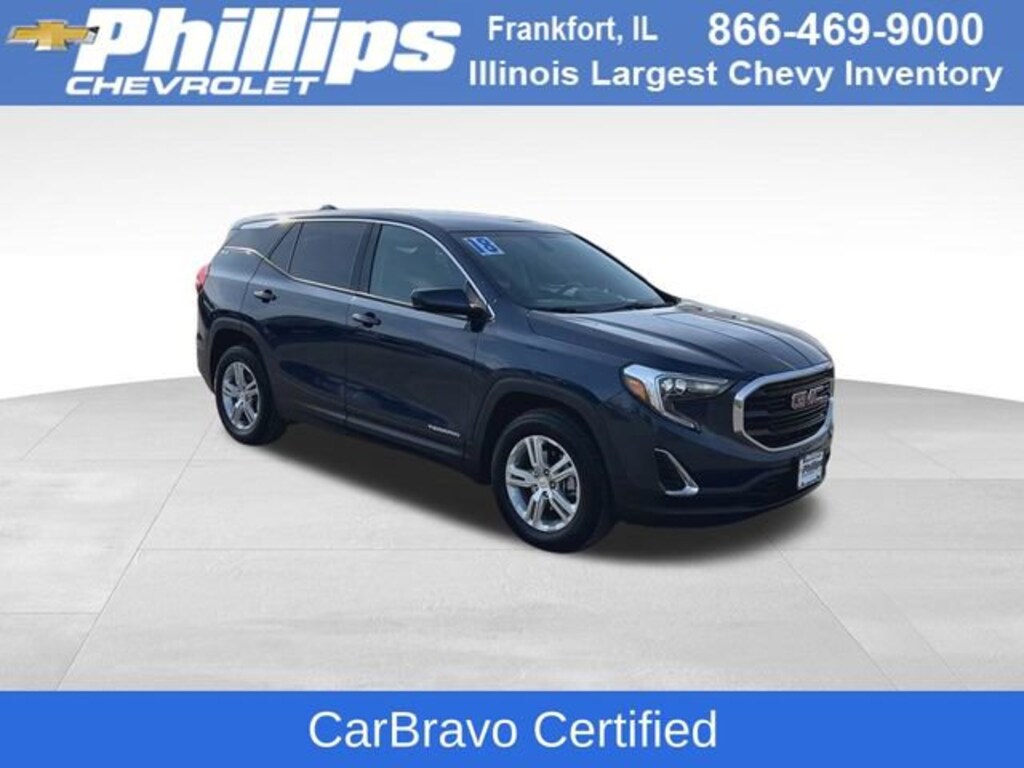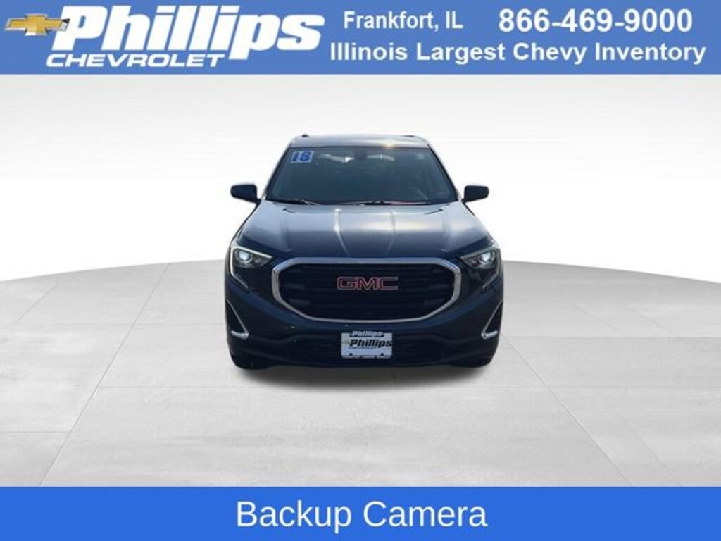 CarBravo Certified, Backup Camera, Remote Start, Apple CarPlay, Aluminum Wheels, Carfax Buyback Guarantee, Terrain SLE, 4D Sport Utility, 1.5L DOHC, 9-Speed Automatic, FWD, Blue Steel Metallic, Jet Black w/Premium Cloth Seat Trim, 2 USB Data Ports w/Auxiliary Input Jack, 4-Way Manual Driver's Seat, 4-Way Manual Front Passenger Seat, 4-Wheel Disc Brakes, 6-Speaker Audio System Feature, ABS brakes, Air Conditioning, AM/FM radio, Apple CarPlay/Android Auto, Auto-dimming Rear-View mirror, Bluetooth® For Phone, Brake assist, Bumpers: body-color, Compass, Delay-off headlights, Driver door bin, Driver vanity mirror, Dual front impact airbags, Dual front side impact airbags, Electronic Stability Control, Emergency communication system: OnStar Guidance, Exterior Parking Camera Rear, Four wheel independent suspension, Front anti-roll bar, Front Bucket Seats, Front Center Armrest, Front reading lights, Heated door mirrors, High-Intensity Discharge Headlights, Illuminated entry, Low tire pressure warning, Occupant sensing airbag, Outside temperature display, Overhead airbag, Overhead console, Passenger door bin, Passenger vanity mirror, Power door mirrors, Power steering, Power windows, Preferred Equipment Group 3SA, Premium Cloth Seat Trim, Radio data system, Radio: GMC Infotainment Audio System w/7 Display, Rear anti-roll bar, Rear seat center armrest, Rear window defroster, Rear window wiper, Remote Start, Security system, Speed control, Speed-sensing steering, Split folding rear seat, Spoiler, Steering wheel mounted audio controls, Tachometer, Telescoping steering wheel, Tilt steering wheel, Traction control, Trip computer, Variably intermittent wipers, Wheels: 17 x 7 Silver Painted Aluminum. 2018 GMC Terrain Blue Steel Metallic SLE 4D Sport Utility FWD 9-Speed Automatic 26/30 City/Highway MPG 1.5L DOHC26/30 City/Highway MPGCertification Program Details: Type your description hereWith the internet today, a great value shouldnât be hard to find. Here at Phillips Chevrolet we do the research for you. We monitor the market daily to ensure our customers are getting the best value achievable. We price all of our vehicles to make the buying process as simple and easy as possible. Our internet prices are just one factor that makes us the #1, #2, and out to be the #3 Chevrolet dealerships in Illinois. The #2 Chevy dealership in Illinois is conveniently located just a one block south of 80/94, at 17730 S Torrence Avenue in Lansing, IL 60438.