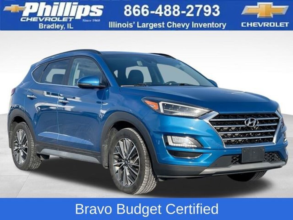 Bravo Budget Certified, One Owner, Carfax- Accident Free, Apple CarPlay, Android Auto, Keyless Entry, Adaptive Cruise Control (ACC), Auto Check - Accident free, Back Up Camera, Blind Spot Monitoring, Bluetooth, Hands-Free Easy Open Power Liftgate, Heated seats, Heated steering wheel, Forward Collision Alert, Lane Assist, Panoramic Roof, Power lift gate, Power Locks, Power Seating, Power Windows, Push Button Start, Remote start, Ventilated Leather Seating Surfaces, Lane Change Alert, Carfax Buyback Guarantee, Tucson Ultimate, 4D Sport Utility, 2.4L I4 DGI DOHC 16V, 6-Speed Automatic with Shiftronic, AWD, Aqua Blue, Black Leather, 18 x 7.0J Alloy Wheels, 4-Wheel Disc Brakes, ABS brakes, AM/FM radio: SiriusXM, Apple CarPlay & Android Auto, Auto High-beam Headlights, Auto-dimming Rear-View mirror, Automatic temperature control, Axle Ratio: 3.195, Brake assist, Bumpers: body-color, Carpeted Floor Mats, Delay-off headlights, Driver door bin, Driver vanity mirror, Dual front impact airbags, Dual front side impact airbags, Electronic Stability Control, Emergency communication system, Exterior Parking Camera Rear, Four wheel independent suspension, Front anti-roll bar, Front Bucket Seats, Front Center Armrest, Front dual zone A/C, Front fog lights, Front reading lights, Fully automatic headlights, Garage door transmitter: HomeLink, Heated & Ventilated Front Bucket Seats, Heated door mirrors, Heated rear seats, Heated steering wheel, Illuminated entry, Leather Seat Trim, Leather Shift Knob, Low tire pressure warning, Mudguards, Navigation System, Occupant sensing airbag, Option Group 01, Outside temperature display, Overhead airbag, Overhead console, Panic alarm, Passenger door bin, Passenger vanity mirror, Power door mirrors, Power driver seat, Power Liftgate, Power moonroof, Power passenger seat, Power steering, Power windows, Radio: Infinity Audio System w/Navigation, Rain sensing wipers, Rear anti-roll bar, Rear reading lights, Rear seat center armrest, Rear window defroster, Rear window wiper, Remote keyless entry, Reversible Cargo Tray, Roof rack: rails only, Security system, Speed control, Speed-sensing steering, Split folding rear seat, Spoiler, Steering wheel mounted audio controls, Tachometer, Telescoping steering wheel, Tilt steering wheel, Traction control, Trip computer, Turn signal indicator mirrors, Variably intermittent wipers, Ventilated front seats. CARFAX One-Owner. Clean CARFAX. Certified. Aqua Blue 2020 Hyundai Tucson Ultimate AWD 6-Speed Automatic with Shiftronic 2.4L I4 DGI DOHC 16V21/26 City/Highway MPGCertification Program Details: Type your description hereWith the internet today, a great value shouldn't be hard to find. Here at Phillips Chevrolet we do the research for you. We monitor the market daily to ensure our customers are getting the best value achievable. We price all of our vehicles to make the buying process as simple and easy as possible. Our internet prices are just one factor that makes us the #1, #2, and out to be the #3 Chevrolet dealerships in Illinois. The future #3 Chevy dealership in Illinois is conveniently located at 1400 Locke Drive, the corner of I-57 & IL 50, in Bradley/Bourbonnais, IL 60914.