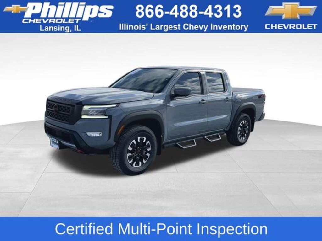 CarBravo Certified, Local Trade, No Added Cert. Fees, Certified Multi-Point Inspection, 4WD!, NEW Tires!, Navigation, Heated Seats, Heated Steering Wheel, Apple CarPlay, Keyless Entry, Side Blind Zone Alert, Rear Cross Traffic Alert, Backup Camera, BLUETOOTH, Power Windows/Locks, Power Seating, PUSH BUTTON START!, Technology Package, Remote Start, 17 WHEELS!, Lane Departure Warning, Cruise Control, Carfax Buyback Guarantee, PRO CONVENIENCE PACKAGE, Boulder Gray Pearl!, Frontier PRO-4X, 4D Crew Cab, 3.8L DI DOHC 24V V6, 9-Speed Automatic, 4WD, Boulder Gray Pearl, Charcoal w/Cloth Seat Trim, 120V Power Outlet in Bed, 120V Power Outlet in Rear Center Console, 17 Alloy Wheels, 3.692 Axle Ratio, 4-Wheel Disc Brakes, 6 Speakers, ABS brakes, AM/FM radio: SiriusXM, Anti-whiplash front head restraints, Bed Under-Rail Lighting, Blind Spot Warning, Brake assist, Bumpers: body-color, Driver door bin, Driver vanity mirror, Dual front impact airbags, Dual front side impact airbags, Electronic Stability Control, Electronic Tailgate Lock, Emergency communication system: NissanConnect Services, Front anti-roll bar, Front Bucket Seats, Front Center Armrest, Front dual zone A/C, Front reading lights, Front wheel independent suspension, Fully automatic headlights, Heated Front Seats, Heated Outside Mirrors, Heated Steering Wheel, High Beam Assist (HBA), Illuminated entry, Illuminated Kick Plates, Intelligent Around View Monitor (I-AVM), Intelligent Cruise Control, Knee airbag, Lane Departure Warning System, Leather Shift Knob, Low tire pressure warning, Navigation system: Nissan Navigation with Voice Recognition, Occupant sensing airbag, Off-Road Protection Package, Off-Road Style Step Rails, Overhead airbag, Overhead console, Panic alarm, Passenger door bin, Passenger vanity mirror, Power door mirrors, Power driver seat, Power steering, Power windows, PRO Convenience Package, PRO Embroidered Premium Cloth Seat Trim, PRO-4X Mud Flaps, Radio data system, Radio: SXM/AM/FM/AUX/USB Audio System w/6 Speakers, Rear anti-roll bar, Rear Automatic Braking (RAB), Rear Cross Traffic Alert (RCTA), Rear seat center armrest, Rear Sonar System, Rear step bumper, Remote Engine Starter, Remote keyless entry, Security system, Speed control, Speed-sensing steering, Split folding rear seat, Spray-In Bedliner, Steering wheel mounted audio controls, Tachometer, Technology Package, Tilt steering wheel, Tow Package: Hitch, Tow Harness, Traction control, Trailer Hitch w/Wiring Harness, Trip computer, Utili-Track System, Variably intermittent wipers, Voltmeter, Wireless Charging For Personal Devices. 2023 Nissan Frontier Boulder Gray Pearl PRO-4X 4D Crew Cab 4WD 9-Speed Automatic 17/22 City/Highway MPG 3.8L DI DOHC 24V V6