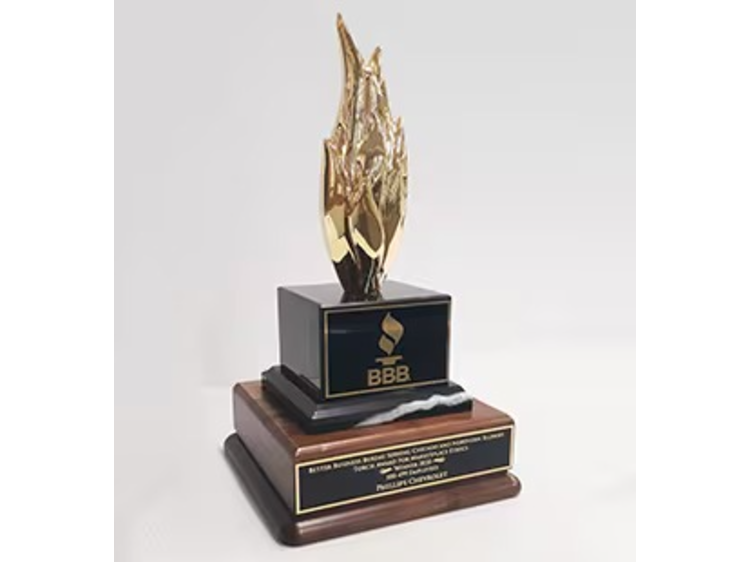 Phillips Chevrolet is honored to have earned the Better Business Bureau's Torch Award for Marketplace Ethics. The Torch Award is the most prestigious award granted by the BBB and is given to businesses demonstrating the highest ethical standards of honesty and integrity.